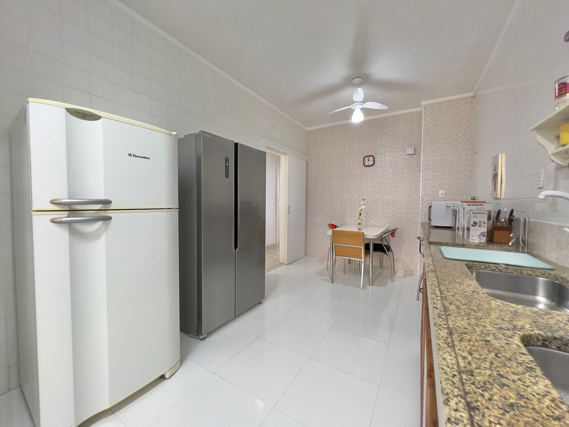 - Eletrodomésticos: micro-ondas, cafeteira, geladeira, liquidificador e torradeira