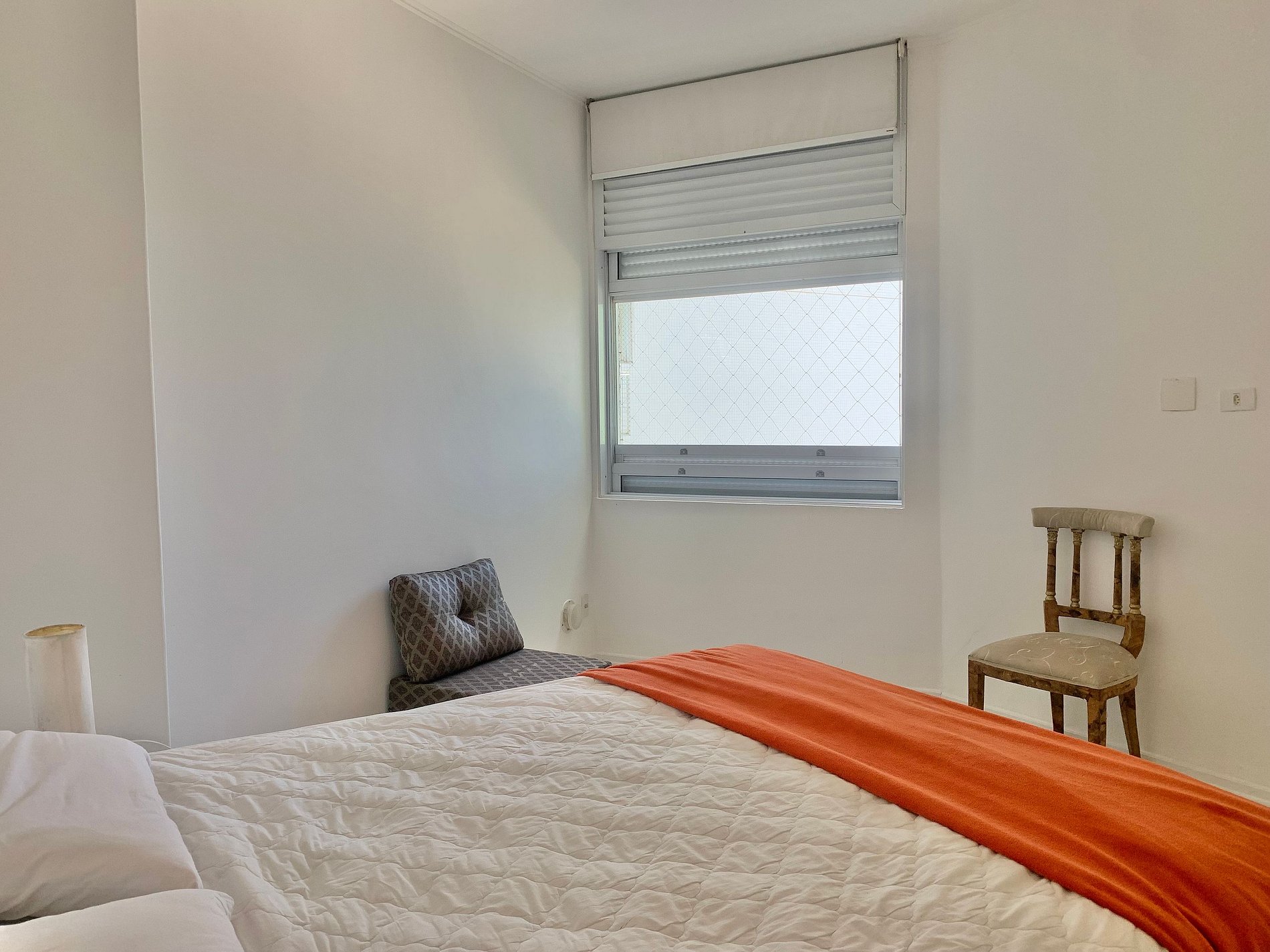 2ª Suíte: Cama de casal queen, escrivaninha para trabalho, ventilador de teto.