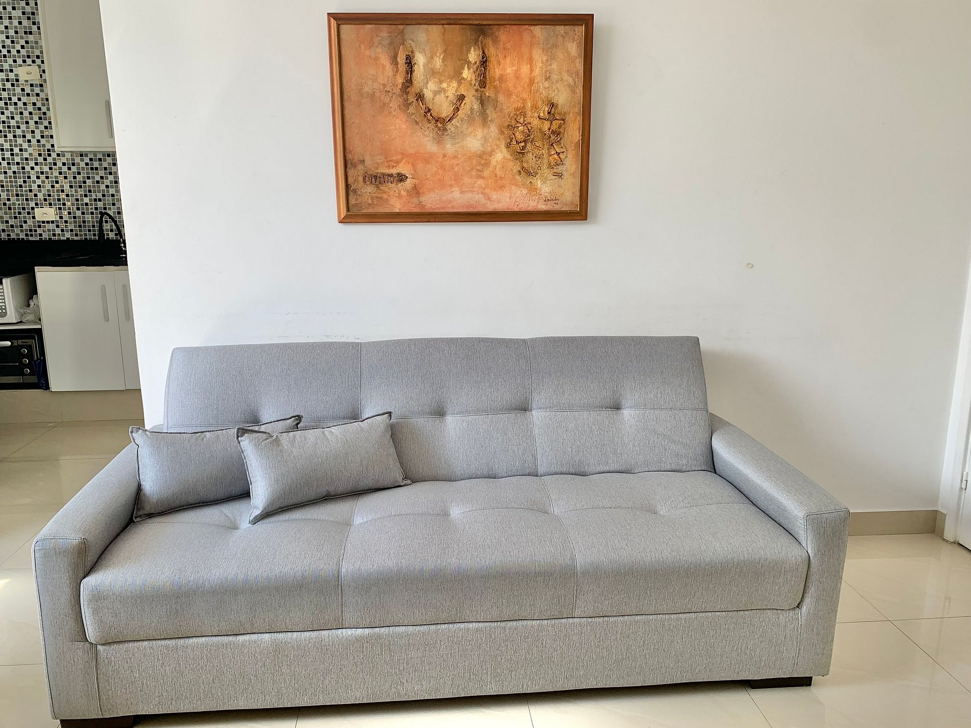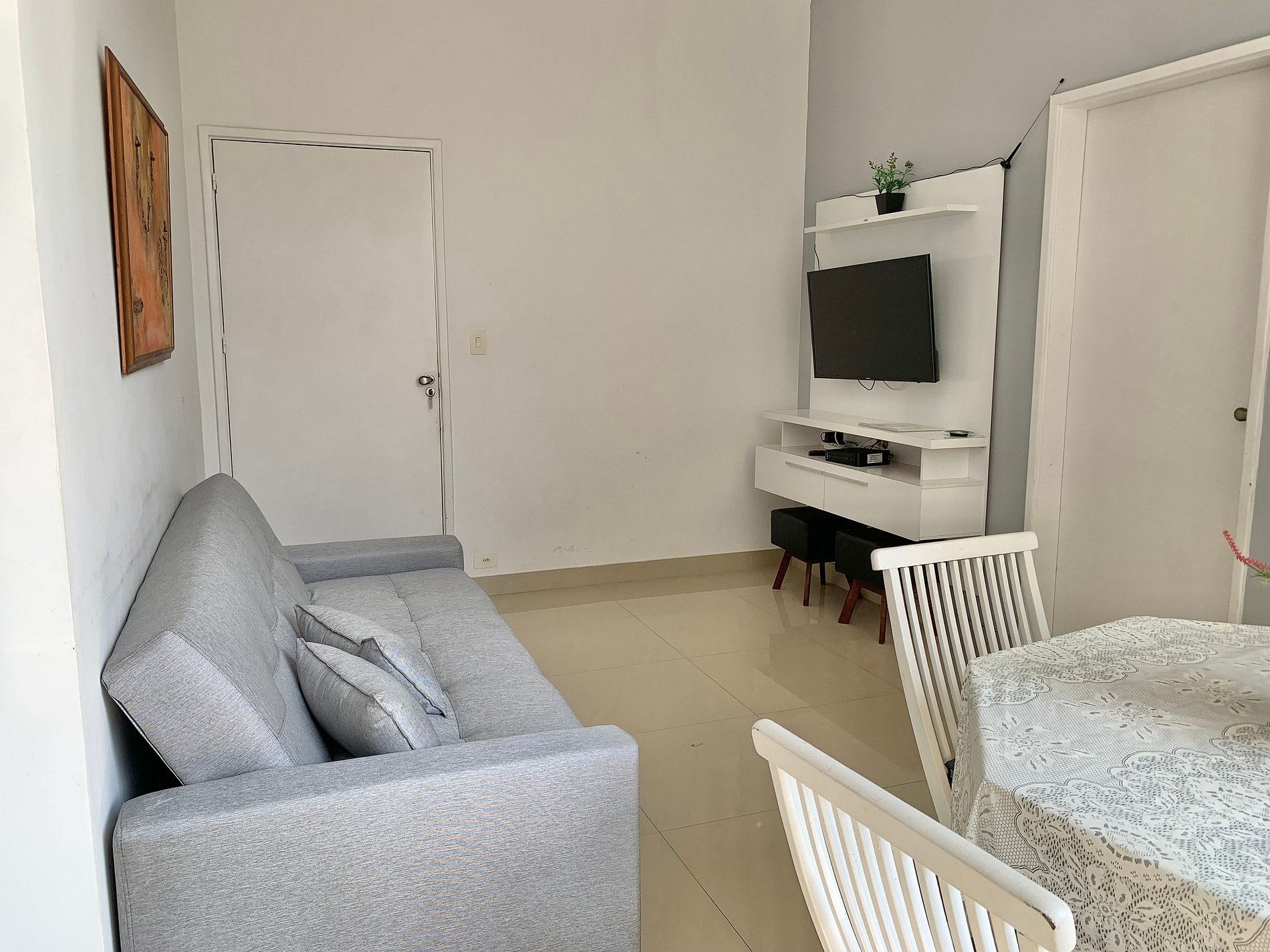 Sala: Conta com um sofá-cama, ideal para mais 2 hóspedes.