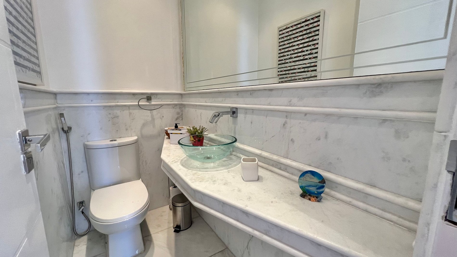 O apartamento fica no 8º andar, possui 2 elevadores (social e de serviço). Para entrada com malas, animais e roupas de banho, é preciso usar o elevador de serviço, que fica do lado esquerdo no fundo do prédio.