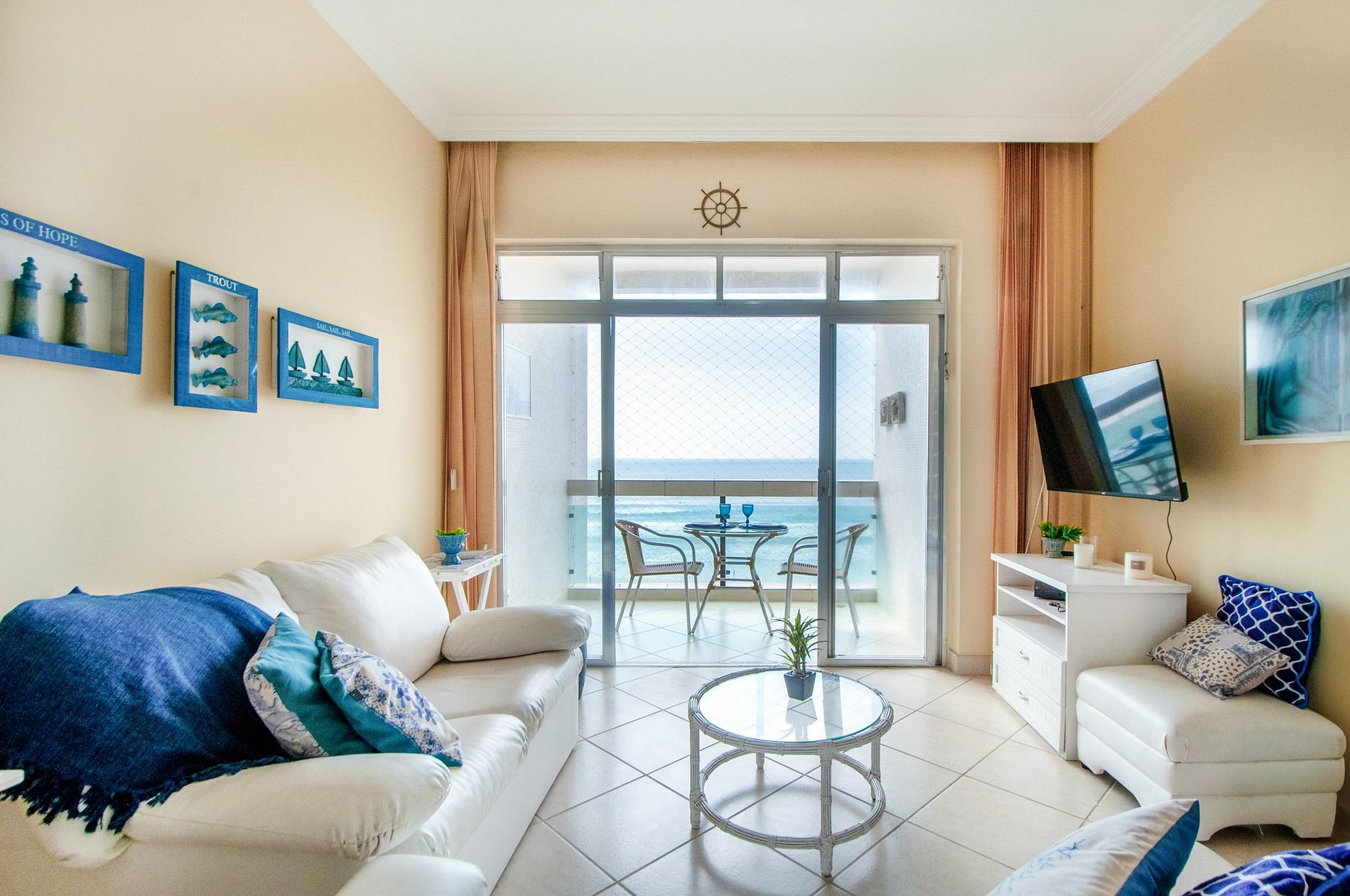Apto em Pitangueiras com localização privilegiada, em frente à praia. Perto de quiosques, shopping e ótimos restaurantes. Ideal para casais, famílias, idosos e pessoas com mobilidade reduzida.