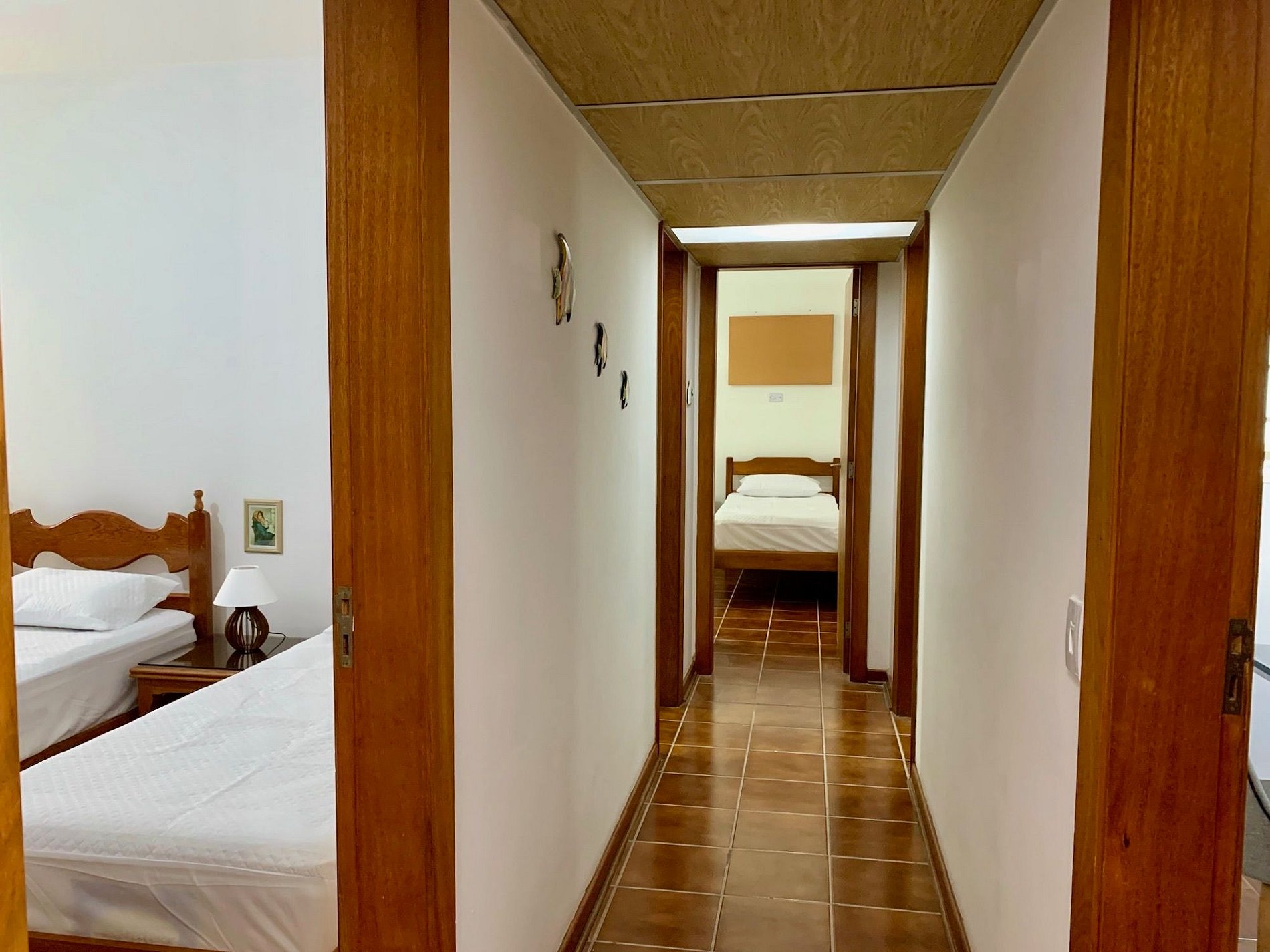 Quarto 3: 3 camas de solteiro, armário embutido, ar condicionado e ventilador de teto.