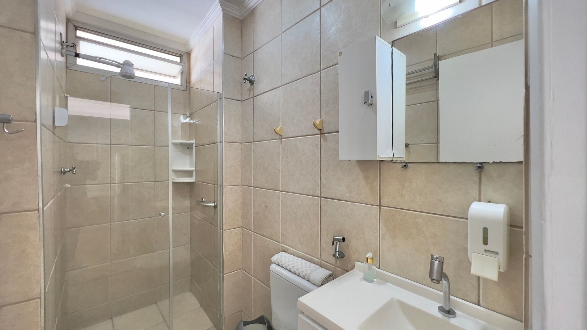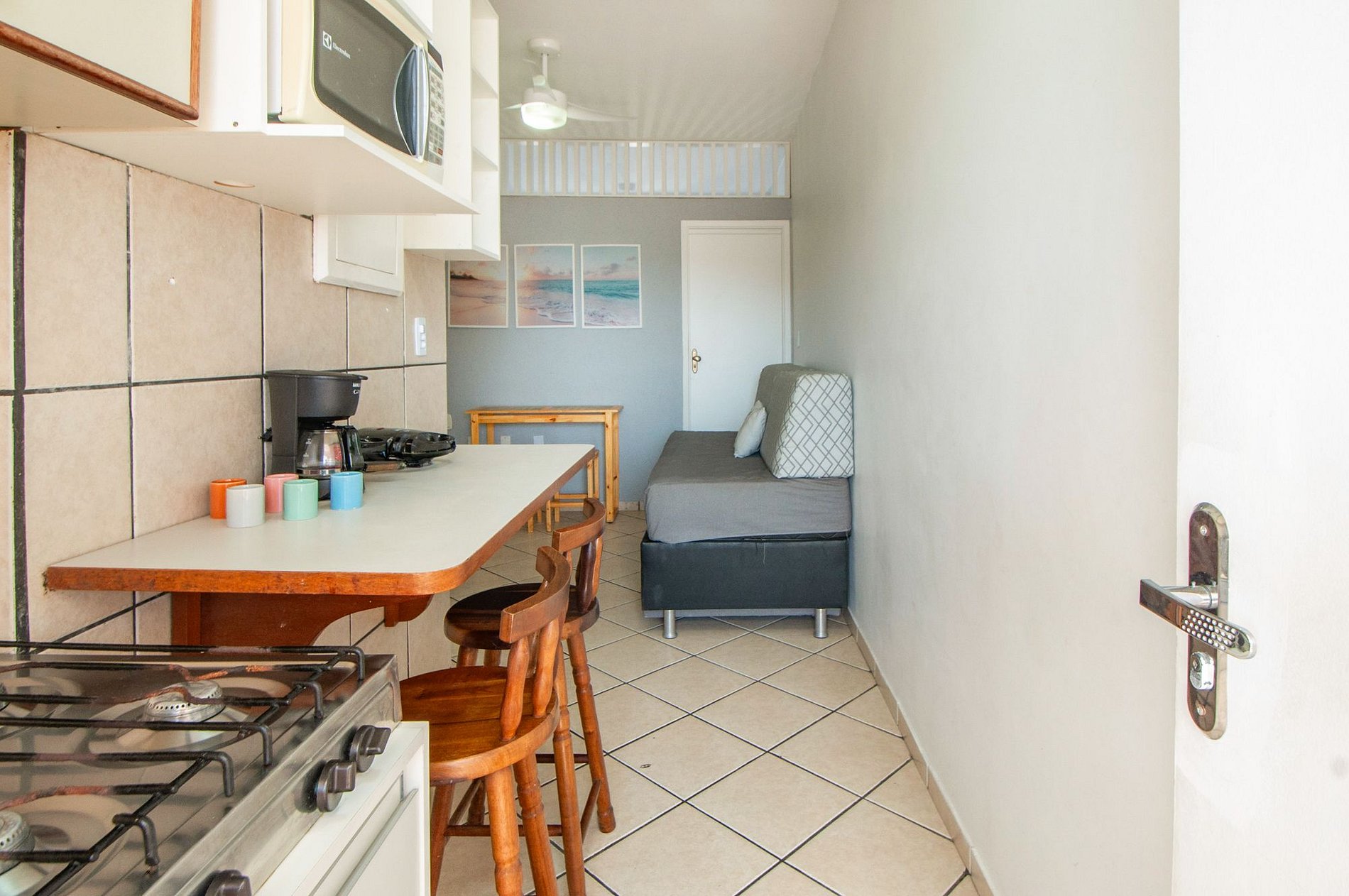 A localização é realmente muito boa e de fácil acesso a praia, mercado, farmacia e restaurantes de Guarujá. A cozinha está completa, possibilidade de cozinhar tranquilamente. A limpeza também está em dia.