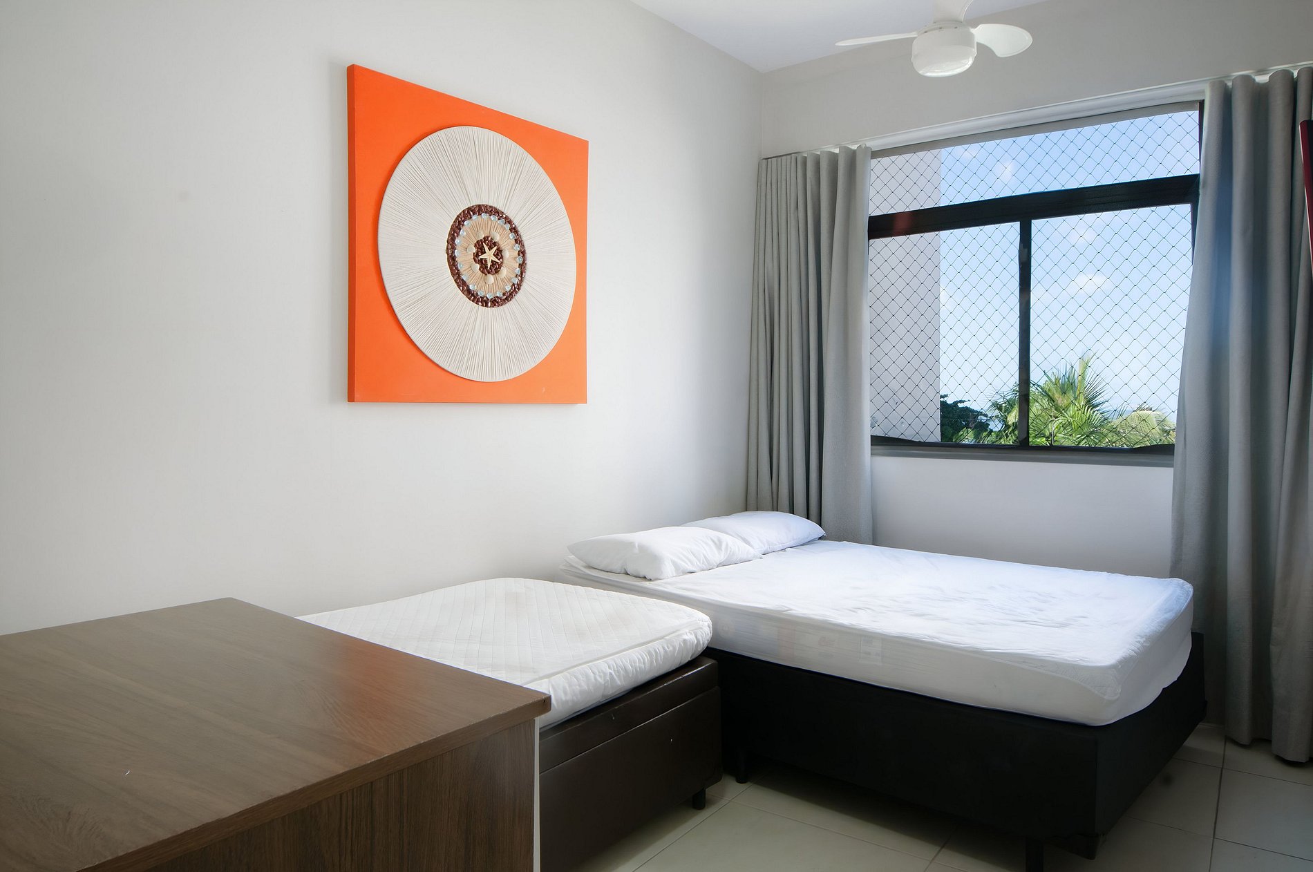 Acomoda confortavelmente 6 pessoas, sendo um quarto com cama de casal, uma cama de solteiro e TV SMART (Você pode fazer o login do seu Netflix, Amazon e etc...), Ar-condicionado e ventilador de teto para o seu conforto.