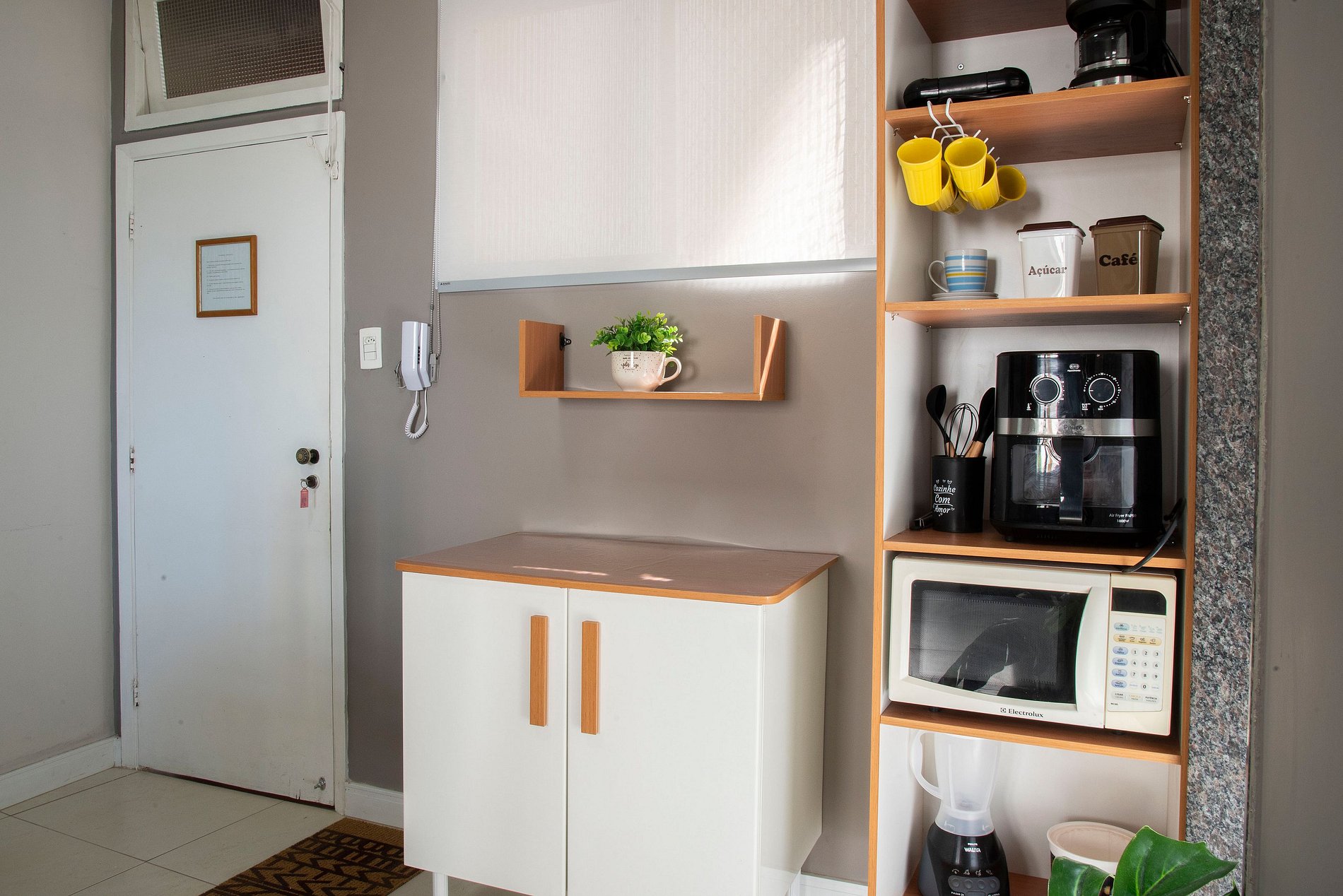 Disponibilizamos a você todos os utensílios (novos) de cozinha necessários para preparar sua refeição e servir, além de equipamentos como micro-ondas, liquidificador, cafeteira elétrica e Airfryer.