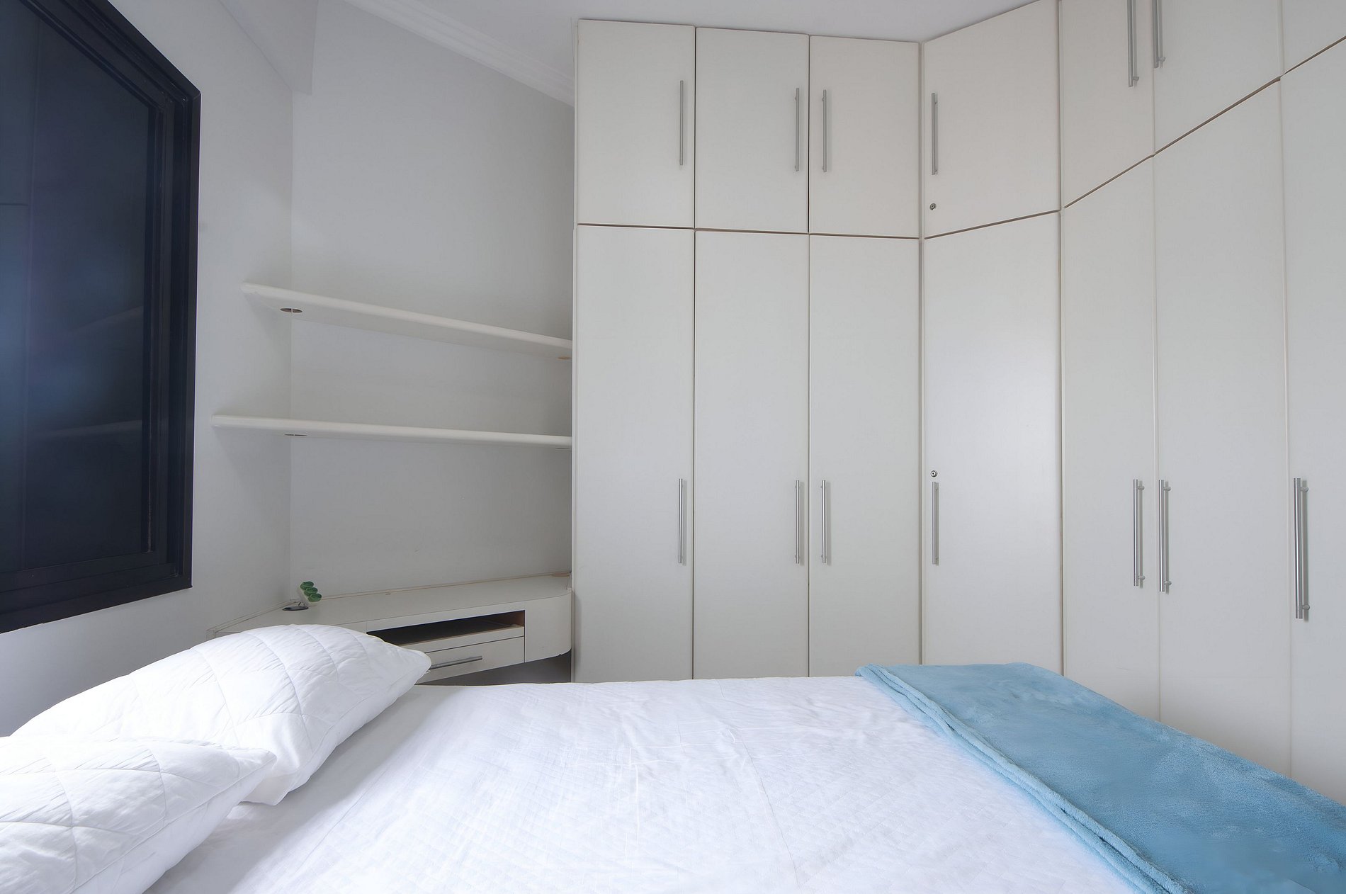 3ª Suíte: Cama de casal padrão, armário e escrivaninha para o home office.