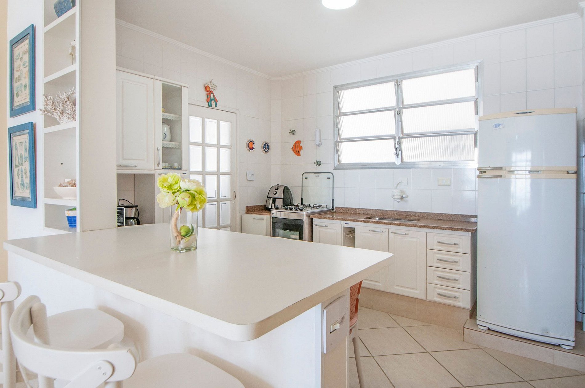 Cozinha bem equipada, geladeira boa e espaço geral melhor ainda.